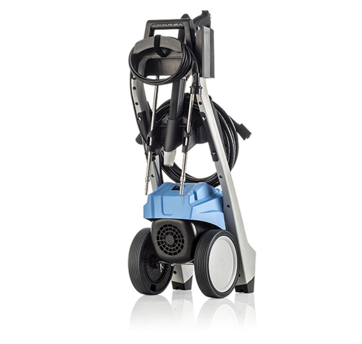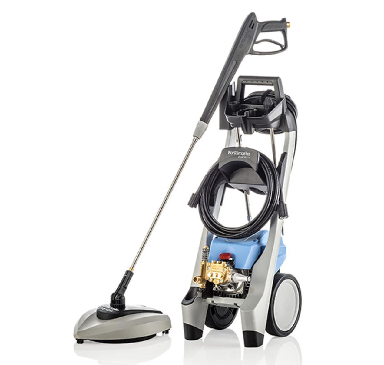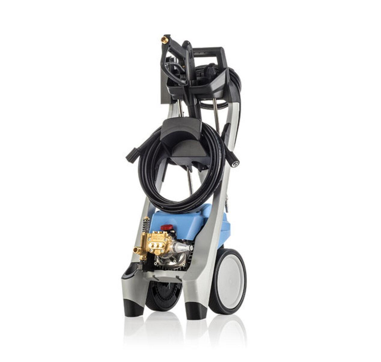 Hidrolimpiadora a alta presión Quickly de Kränzle, un modelo de calidad profesional para un uso doméstico. Máquina con cabezal de la bomba de latón especial forjado, pistones de acero inoxidable con revestimiento cerámico. Quickly cuenta además con ruedas y chasis todoterreno para una durabilidad mayor, bandeja para accesorios y filtro de entrada de agua.